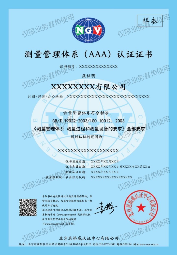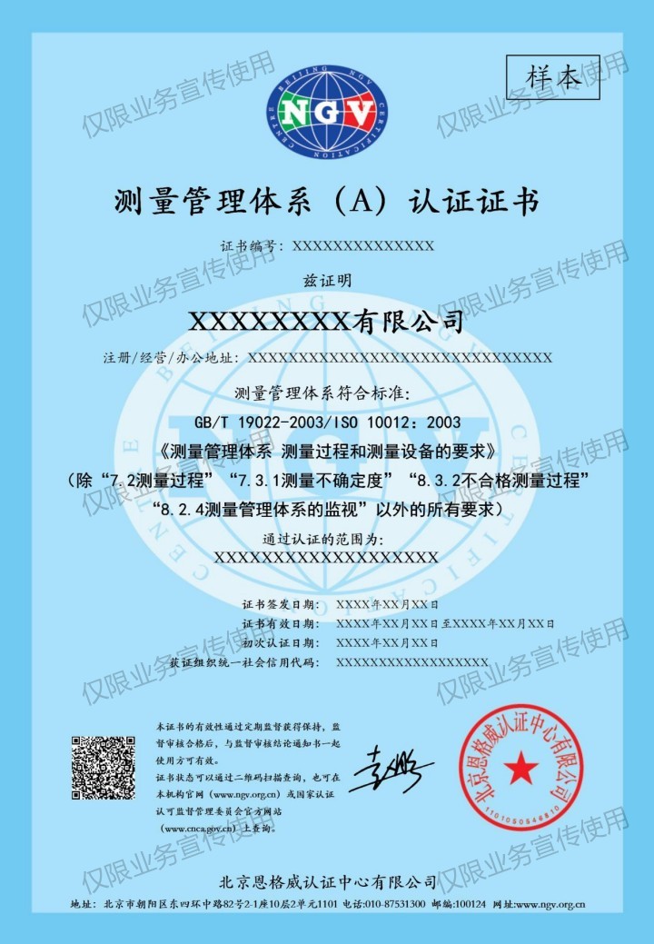 3.企业在测量管理能力的有效证明,获取国内、外市场对企业测量管理能力的认可。