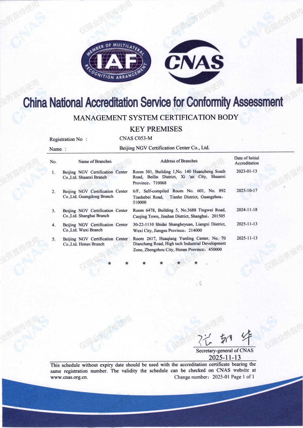 IAS 认可证书——附件