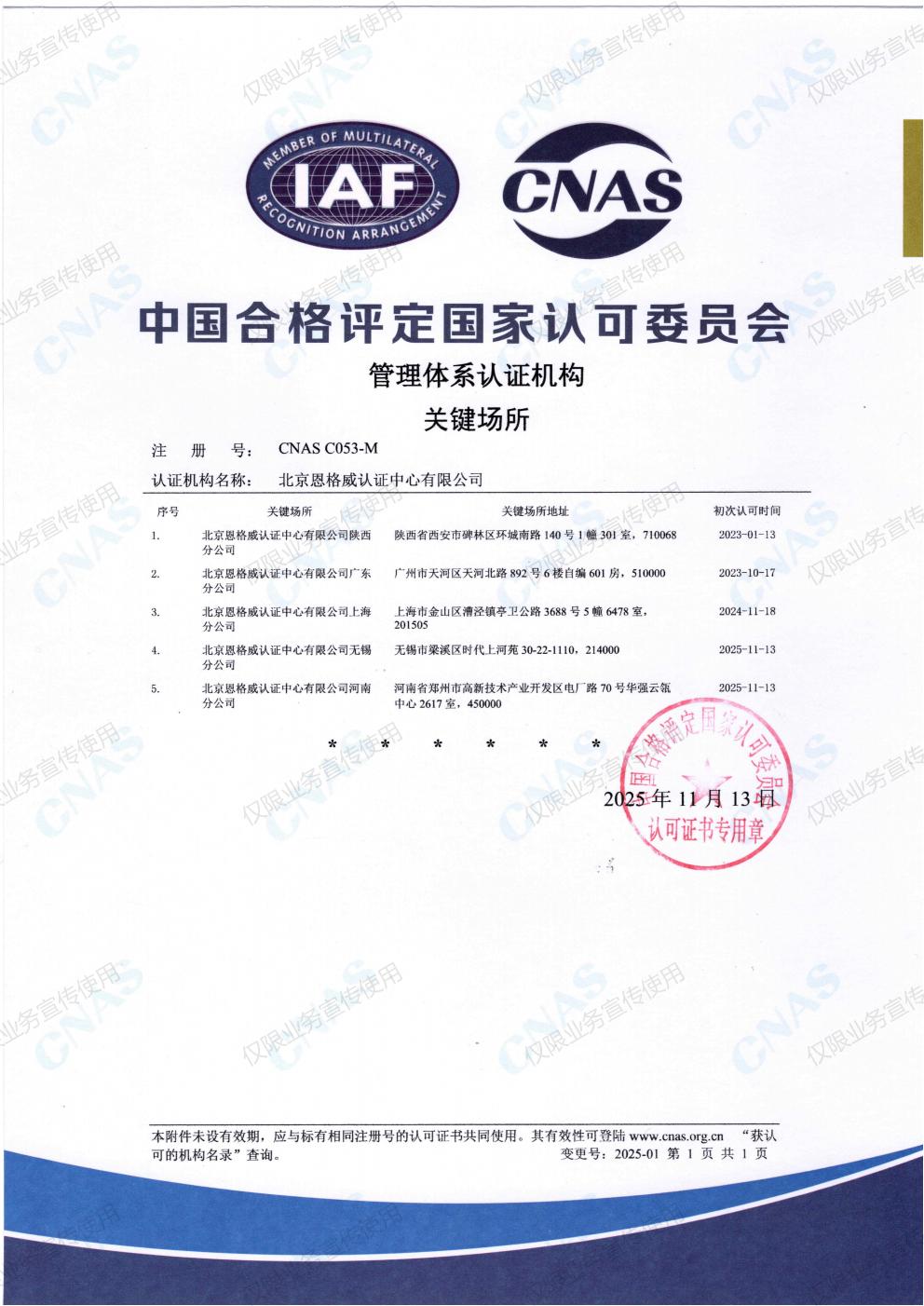 业务连续性管理体系认证机构认可业务范围
