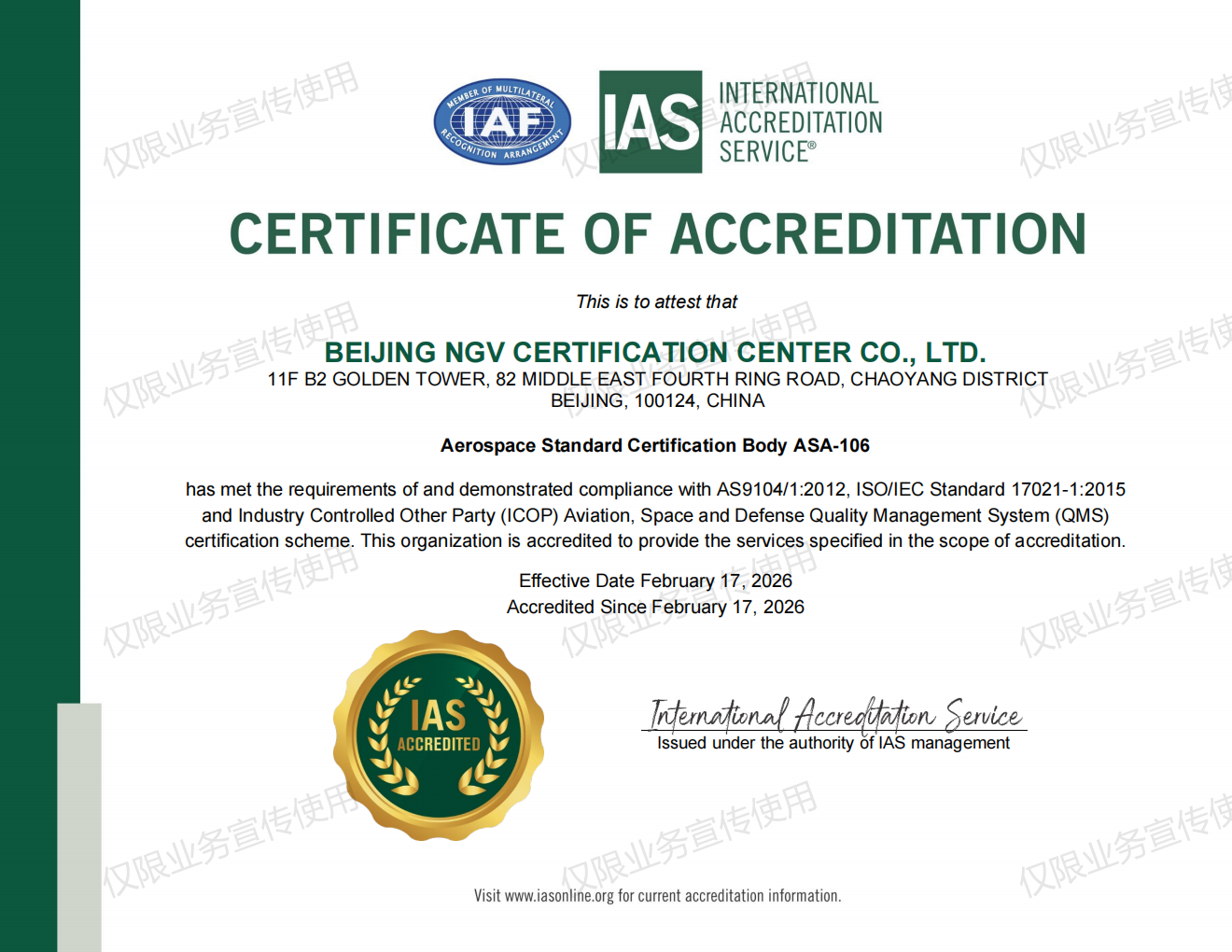 IAS 认可证书